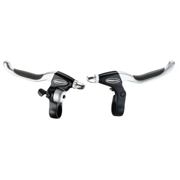 Luxe remhandgrepen set van het merk Tektro. De linker remhandgreep is voorzien van een geïntegreerde bel. Deze remgrepen set zie je vaak terug op duurdere (elektrische) fietsen.